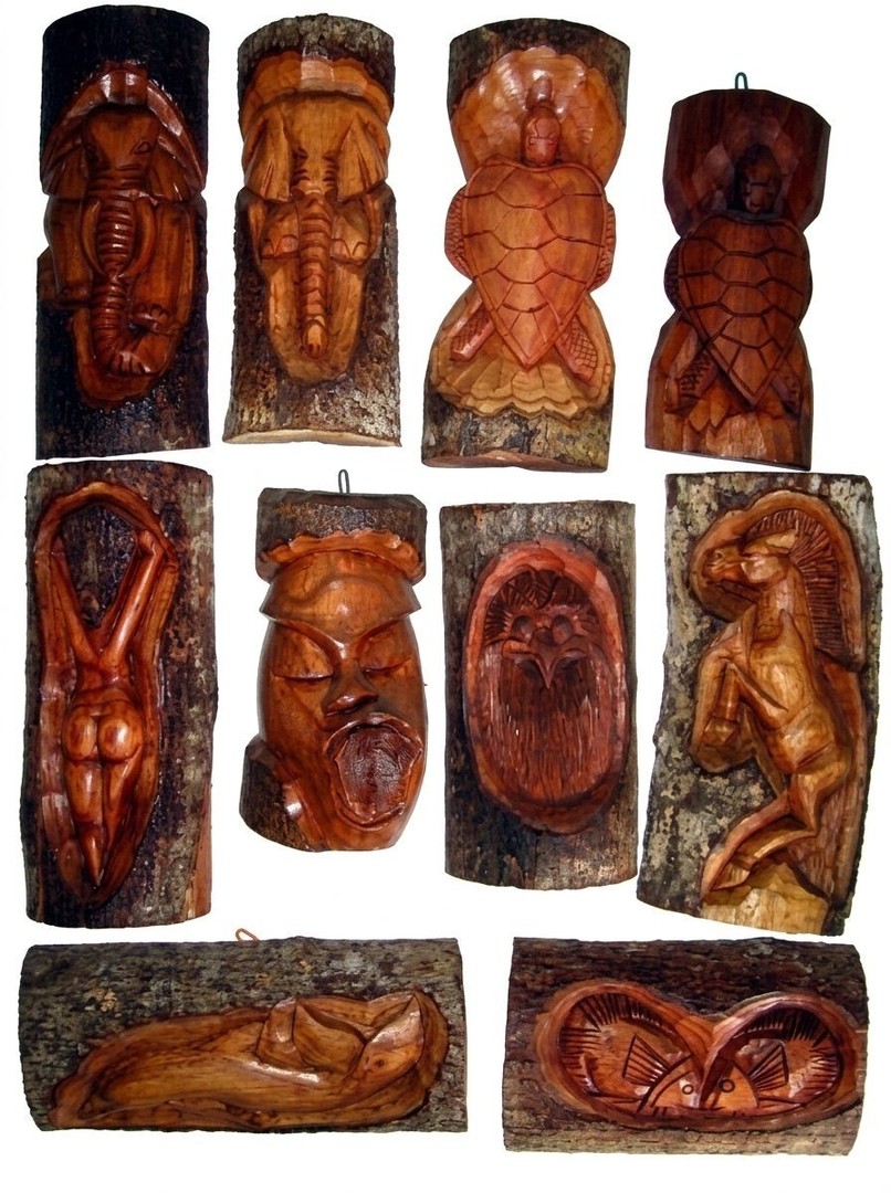 LESENA SKULPTURA ZA NA STENO, ROČNO IZREZLJANA IZ POLOVICE DEBLA