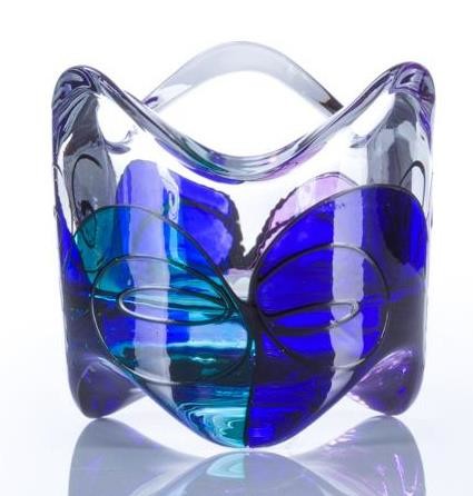 STEKLENI SVEČNIK ROČNO POSLIKAN.